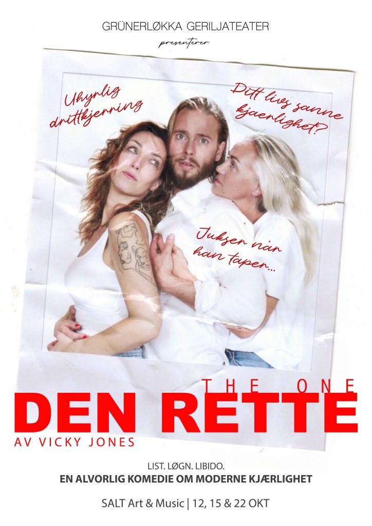 Grünerløkka Geriljateaters DEN RETTE har Norgespremiere på Salt Art & Music 12. oktober! Ytterligere forestillinger den 15. og 22. Alle dager kl. 19.